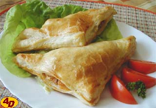 Nejdříve si připravíme rybí směs. Cibuli oloupeme a jemně nakrájíme, papriku rozkrojíme, vyjmeme z ní semínka, opláchneme ji a pokrájíme na proužky. Česnek oloupeme a později ho do směsi prolisujeme. Filé rozkrájíme na kostky a opečeme ho na rozpáleném oleji. Přidáme konzervované lečo a nakrájenou papriku, prolisovaný česnek, sůl a všechno koření. Směs promícháme, nevadí, že se filé postupně rozpadá. Ochutnáme ji, zda je dostatečně pikantní a nakonec do ní vmícháme jedno vejce a necháme ho srazit. Směs necháme vychladnout a zatím si připravíme listové těsto. Rozválíme ho na tenký plát a rozkrájíme ho na větší čtverce. Do středu každého čtverce navršíme rybí směs – dbáme na to, abychom nepotřísnili okraje šátečku – rohy přehneme a kraje důkladně stiskneme. Šátečky přeneseme na vodou vypláchnutý plech na pečení, potřeme je rozšlehaným vejcem a pečeme v troubě rozpálené na 200 stupňů C. Troubu při pečení zbytečně neotvíráme, abychom neporušili „lístkování“ těsta. Podáváme teplé s hlávkovým salátem. Výborné (a možná ještě lepší než teplé), jsou i studené a mohou být ozdobou studeného bufetu. Velikost šátečků si samozřejmě přizpůsobíme.
