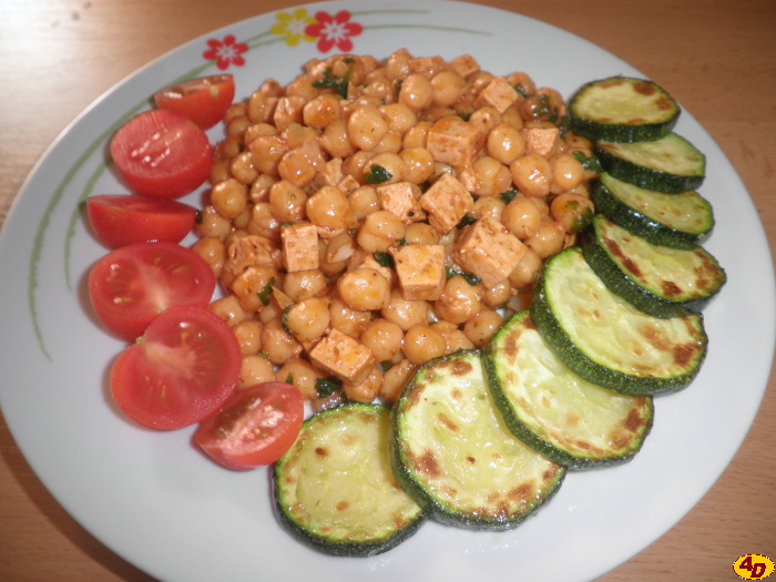 Cizrnu namočíme na noc do vody. Druhý den ji uvaříme do měkka. Můžeme nahradit cizrnou z konzervy, pak namáčení a vaření odpadá. Na pánvi rozpálíme olej, osmahneme na něm nakrájenou cibuli a česnek. Poté přidáme pokrájeného Šmakouna, kečup, koření a posekanou zelenou petrželku. Promícháme s uvařenou cizrnou. Můžeme podávat s osmahnutými kolečky cukety a s rajčaty, tak jak je vidět na fotografii.