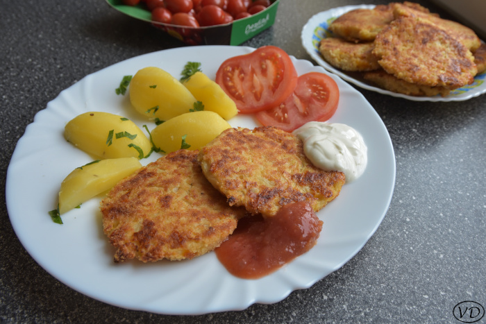 Plech vyložíme papírem na pečení a potřeme lehce olejem. Na talíř si připravíme trochu strouhanky. Nabereme vrchovatou lžíci směsi, v dlani trochu umačkáme na kouli a obalíme ve strouhance. Tu položíme na plech a teprve tam lehce rozmáčkneme. Jednotlivé placičky můžeme dát blízko sebe, neroztékají se.